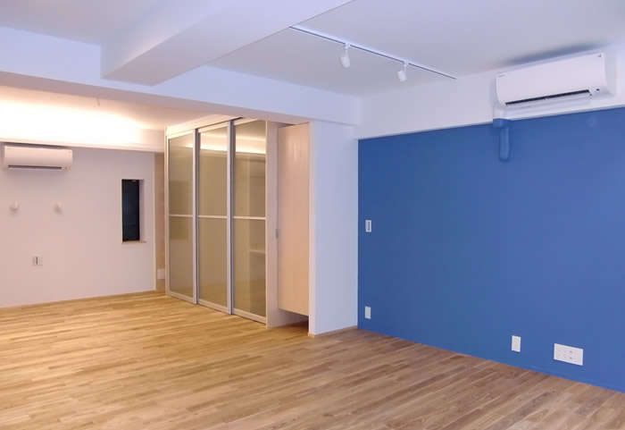 カラーウォールがアクセントになり開放感のある部屋になりました。